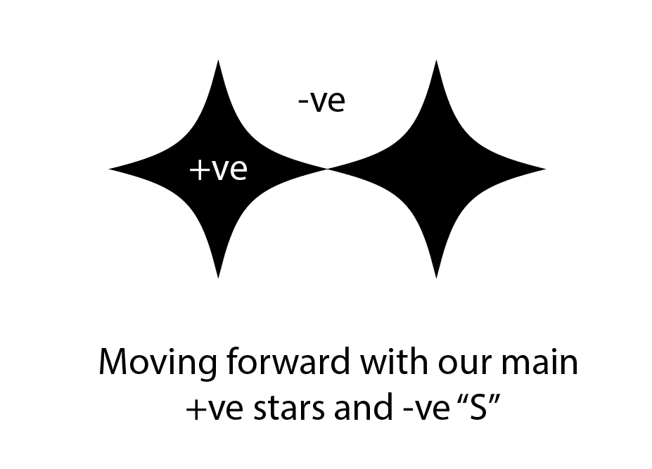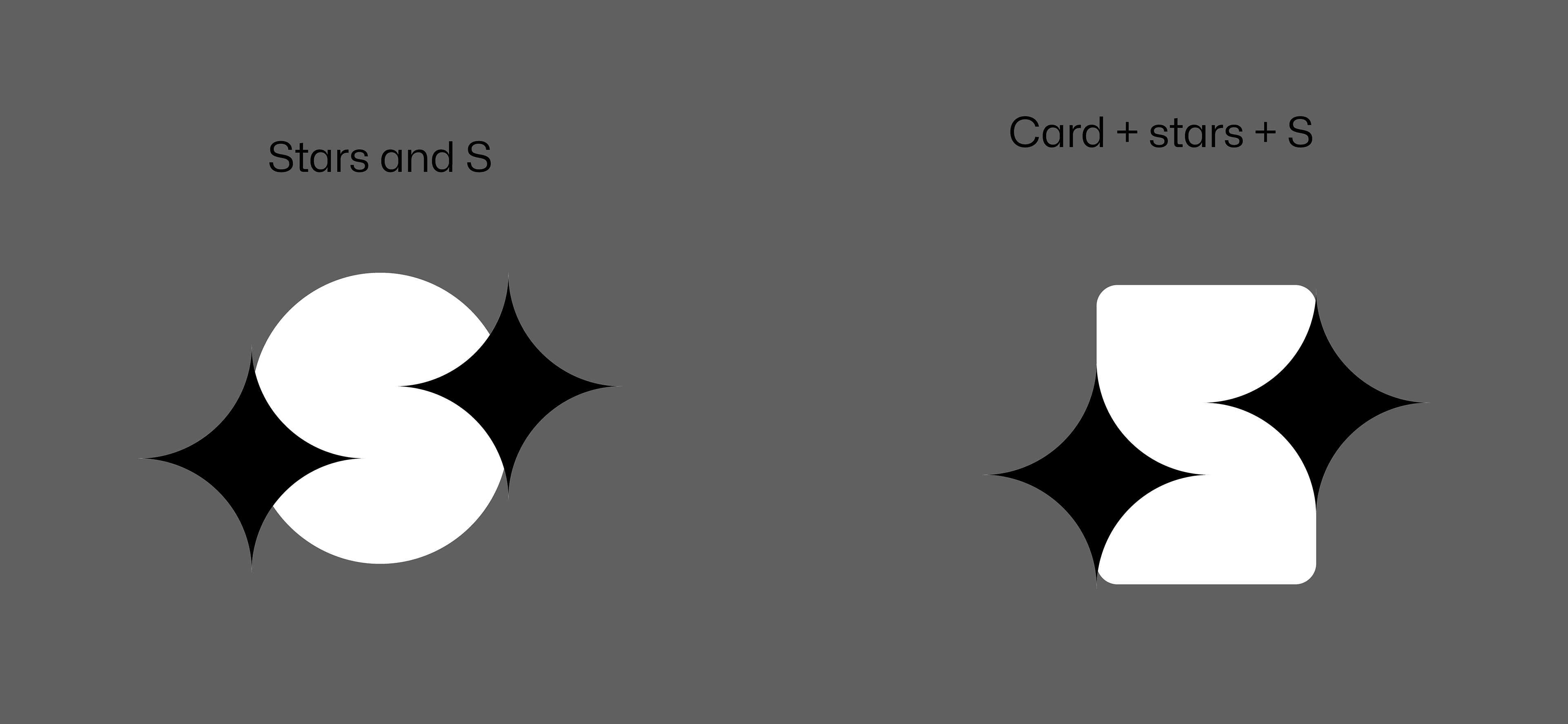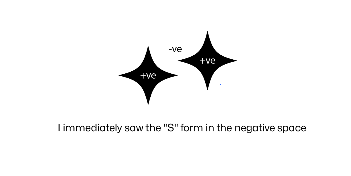 I immediately saw the "S" form in the negative space by arranging the stars. By placing one star slightly lower on the left and another slightly higher on the right, the subtle"S" shape emerged between them.