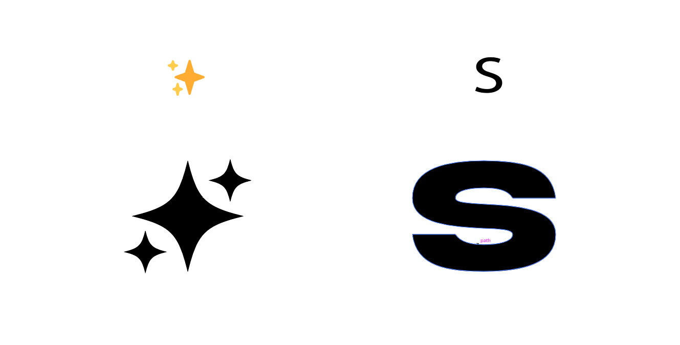 Inspired by the original logo and the common sparkling star emoji, I aimed to create a design that was both similar and yet modern. The core concept was to use three stars to subtly form an "S" in the negative space. The first step was to design the sparkling star element itself, a motif similar to what is now used by the Gemini app.